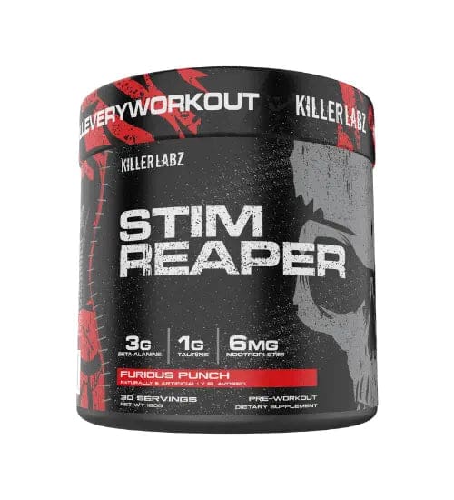 Killer Labz Stim Reaper is a pre-workout that packs the toughest, most powerful punch of adrenaline-pumping stimulants around – guaranteed to amp up your energy and focus!