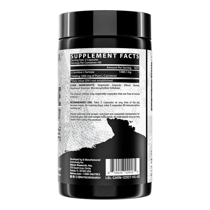 Nutrex Carnitine is a stimulant-free, highly effective weight loss supplement that helps convert stored body fat into energy. It utilizes the natural compound L-Carnitine to support the transportation of fatty acids to the mitochondria, where they can be burned off as energy.
